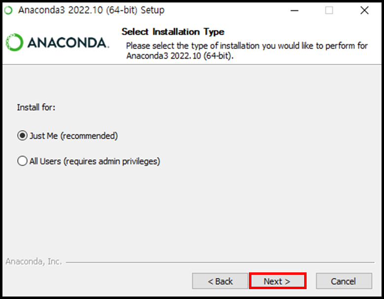 1. ANACONDA 설치 페이지 접속 후 본인 OS에 맞게 설치
