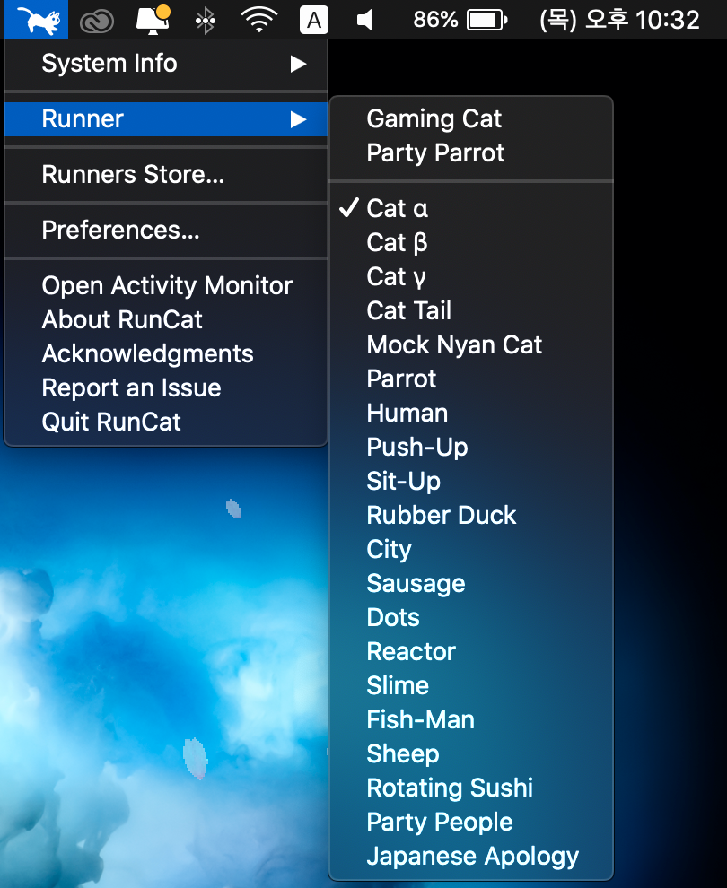참고자료 : https://github.com/Kyome22/RunCat_for_windows/releases?s=09