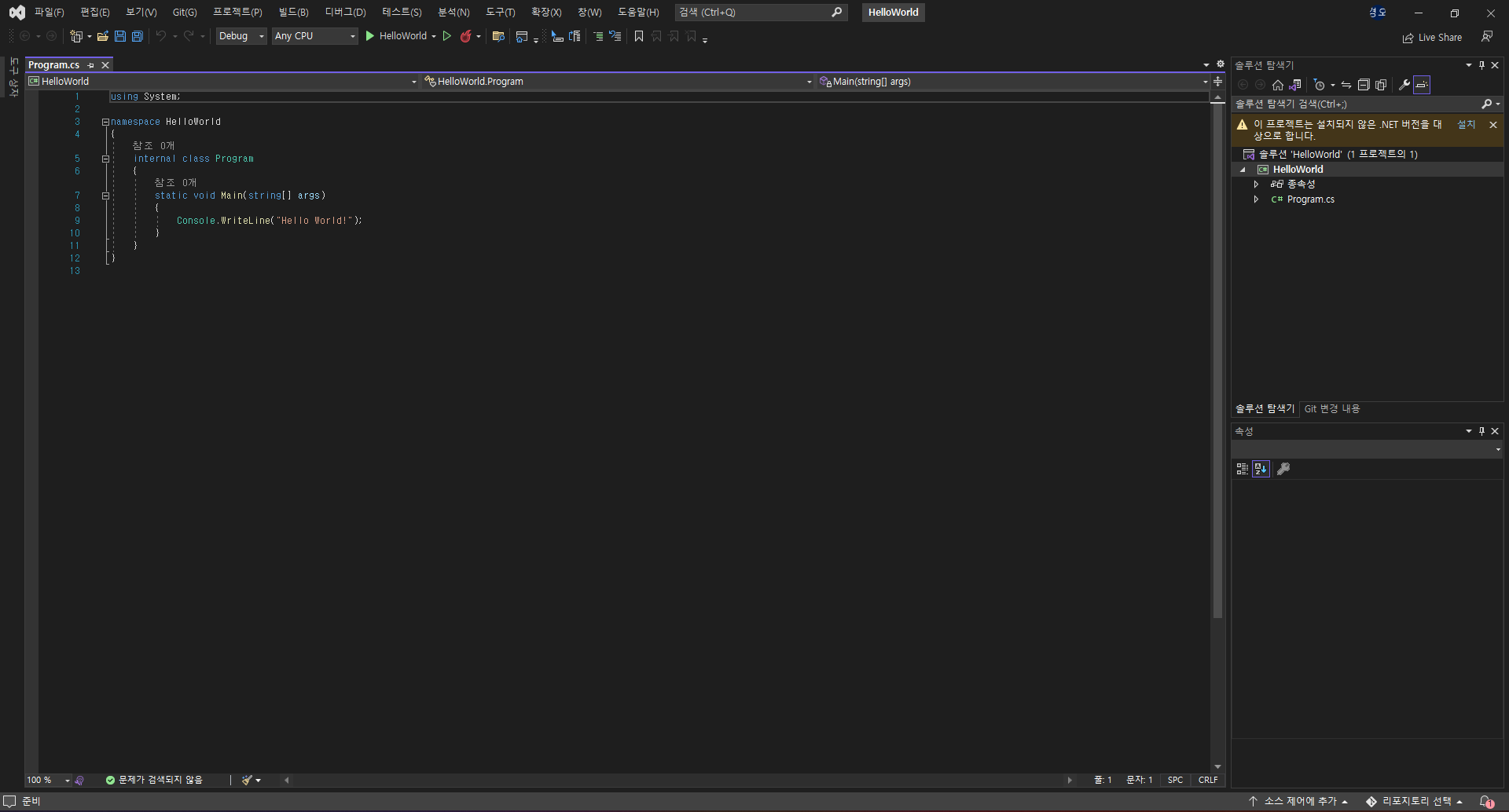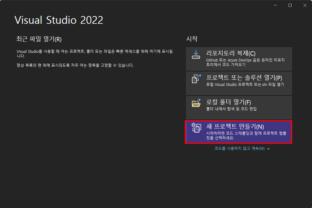 비주얼 스튜디오를 설치했으면 프로그램을 만들기 전 새 프로젝트를 먼저 만들어야 한다.