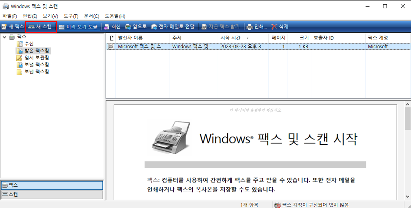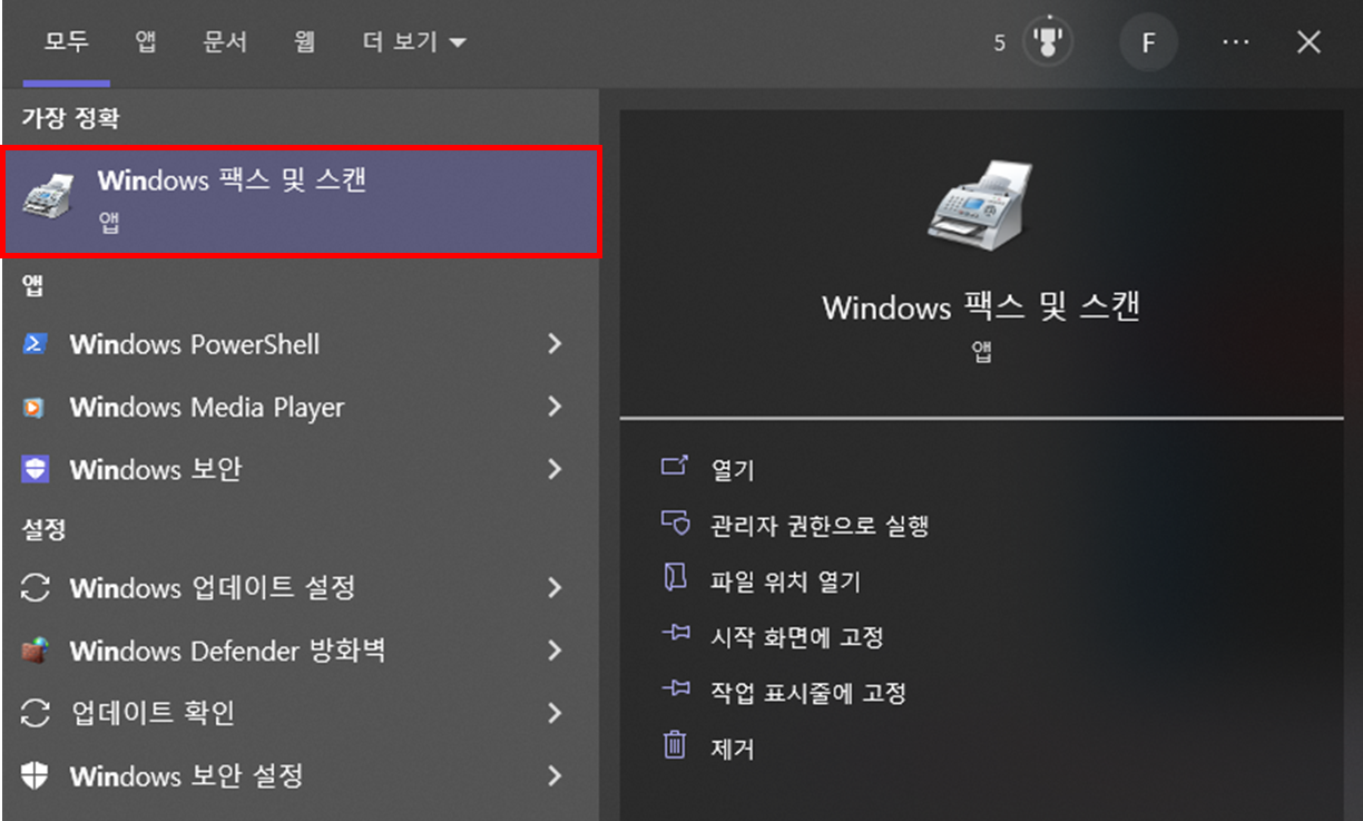 2. 'Windows 팩스 및 스캔을' 클릭한다.