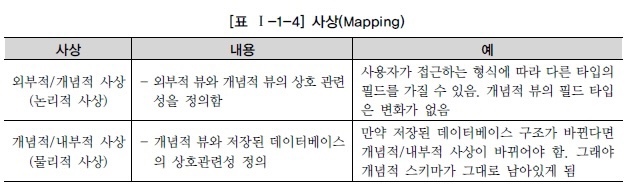 데이터 독립성을 보장하기 위해서는 사상을 하는 스크립트(DDL)를 DBA가 필요할 때마다 변경해 주어야 한다.