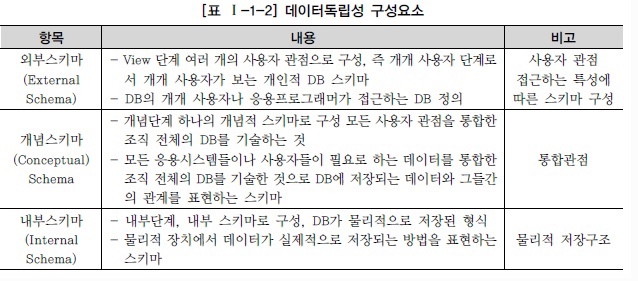 이렇게 3단계로 개념이 분리되면서 각각의 영역에 대한 독립성을 지정하는 용어가 바로 논리적인 독립성과 물리적인 독립성이다.