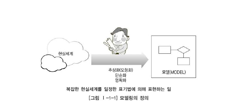 따라서 모델링을 다시 정의하면 '현실세계를 추상화, 단순화, 명확화하기 위해 일정한 표기법에 의해 표현하는 기법'이라 할 수 있다. 정보시스템 구축에서 모델링은 계획, 분석, 설계 단계에서 업무를 분석하고 설계할 때, 이후 구축, 운영 단계에서 변경과 관리할 때 이용된다.
