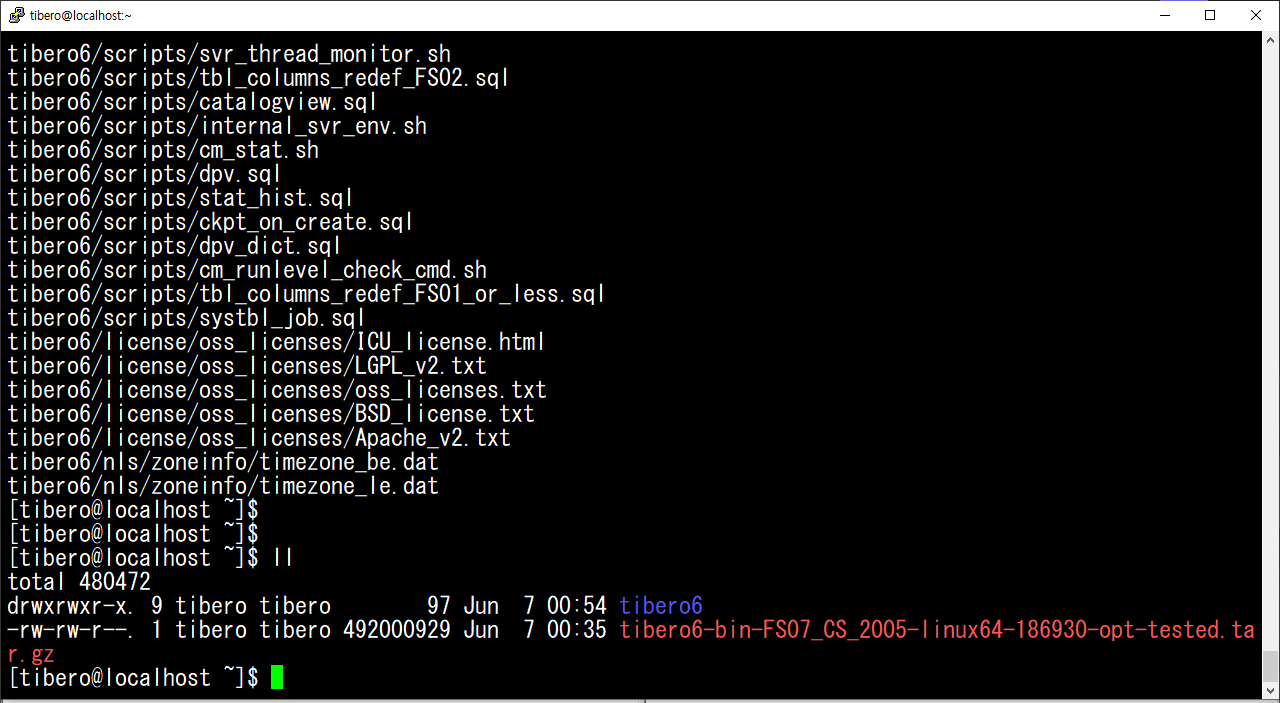 tar -xvf tibero6-bin-FS07_CS_2005-linux64-186930-opt-tested.tar.gz