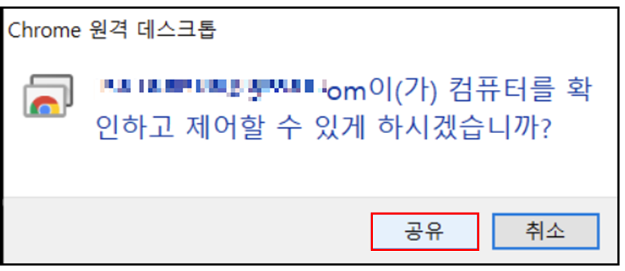 5. 접속 받는 PC(원격 기기)에서 다음과 같은 창이 뜨면 '확인' 버튼 클릭