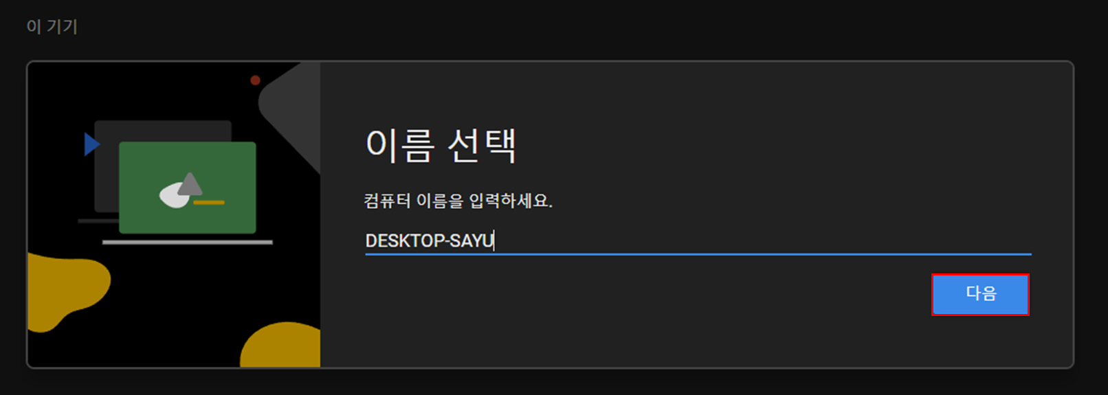 2. 컴퓨터 이름 입력 후 '다음' 버튼 클릭