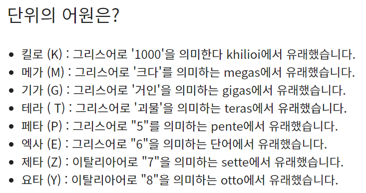 | 킬로바이트(Kilobyte) : 1,000 Byte |