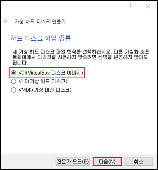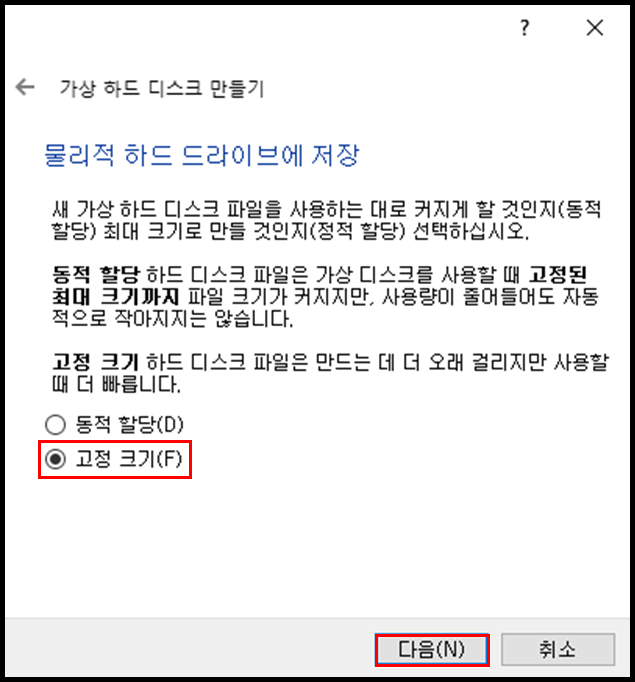 - 시스템 기본 메모리 및 디스크 파일 크기 동일하게 생성
