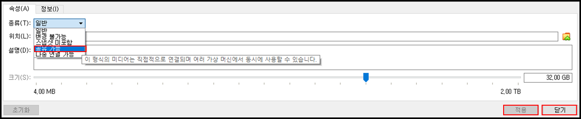 - 만들어진 공유디스크는 상태를 변경하려면 가상서버와 연결 삭제