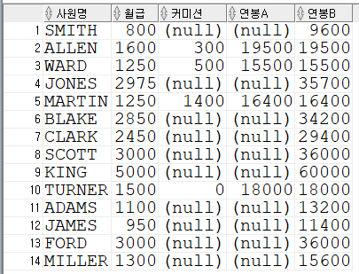 (SAL * 12) + NVL(COMM, 0) AS 연봉B