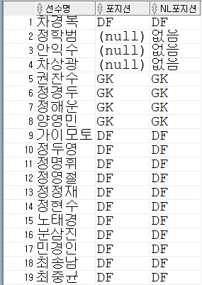 [예제] 선수 테이블에서 성남 일화천마(K08) 소속 선수의 이름과 포지션을 출력하는데, 포지션이 없는 경우는 '없음'으로 표시한다.