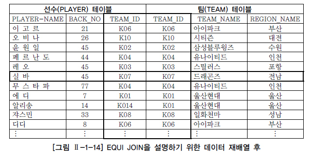 ○ EQUI JOIN(NATURAL JOIN, 등가 조인)