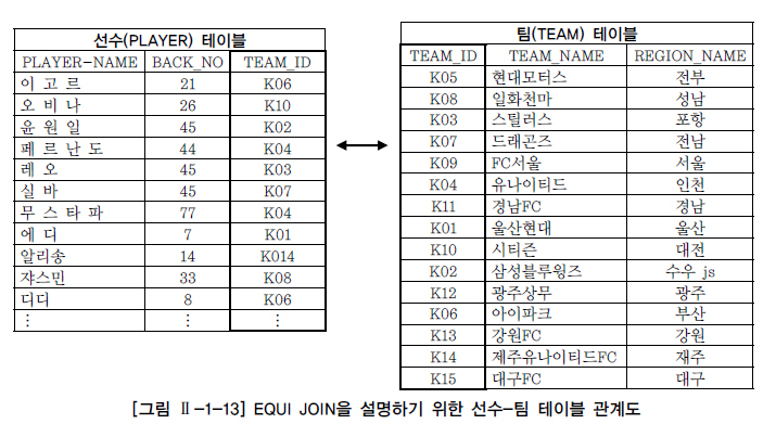 [예제] 선수 테이블과 팀 테이블에서 선수 이름과 소속된 팀의 이름을 출력하시오.
