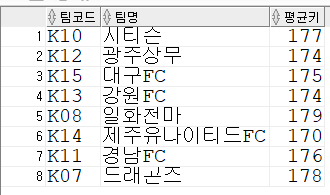 WHERE X.TEAM_ID = P.TEAM_ID)) AS 팀평균키