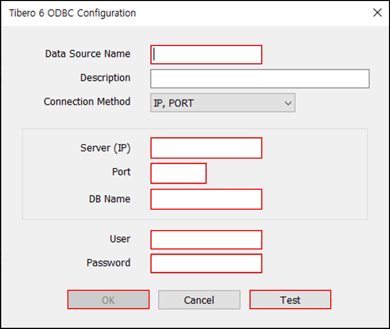 - 각 정보를 입력 후 'Test' 버튼 클릭.