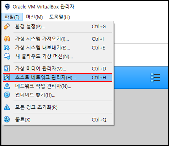 1. 호스트 네트워크 관리자를 확인해보면 다음과 같다.