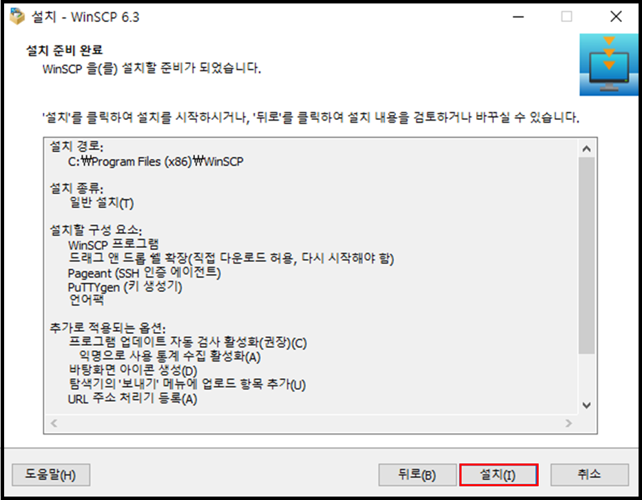 1. WinSCP 설치 페이지 접속 후 설치 진행
