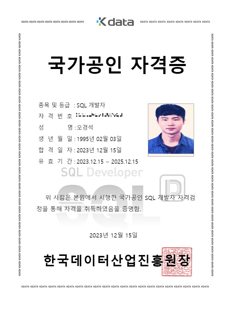 제 51회 SQLD 시험을 합격했다.