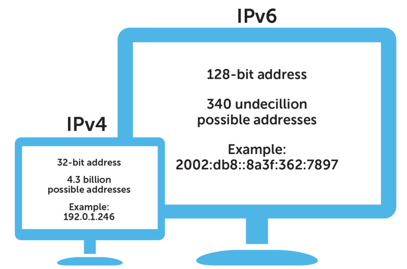 그러나 자동차 번호판 번호의 경우에 가능한 순열이 너무 많고 주기적으로 다시 형태를 변경해야 하는 것처럼, 사용 가능한 IPv4 주소의 공급도 고갈되어간다. IPv6 주소에는 더 많은 문자가 있으므로 더 많은 순열이 있다. 그러나 IPv6는 아직 완전히 채택되지 않았으며 대부분의 도메인과 장치에는 여전히 IPv4 주소가 있다.