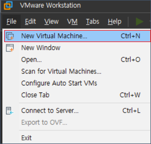 1. Create a New Virtual Machine 또는 File > New Virtual Machine 클릭 (단축키: Ctrl+N)