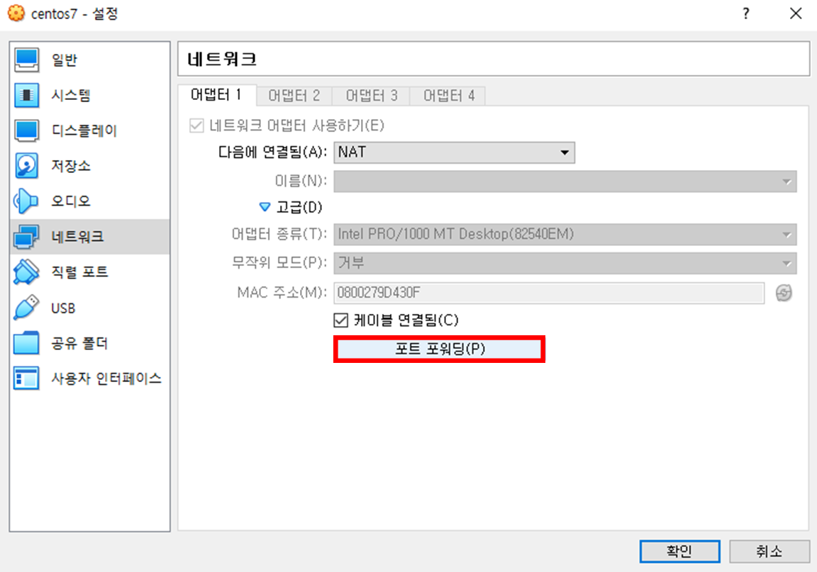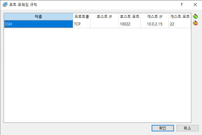 7. VirtualBox 설정 - 네트워크 - 고급 - 포트포워딩