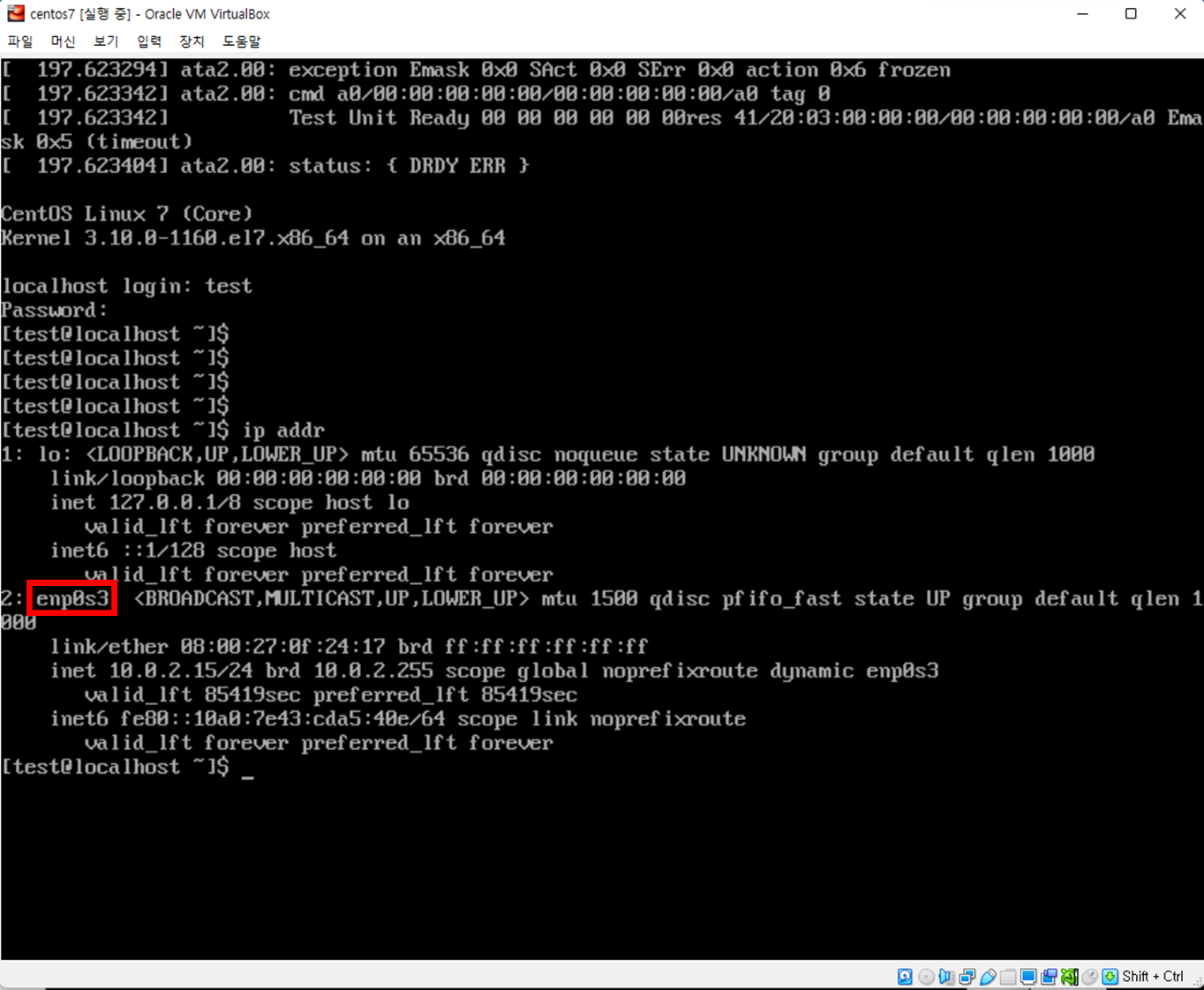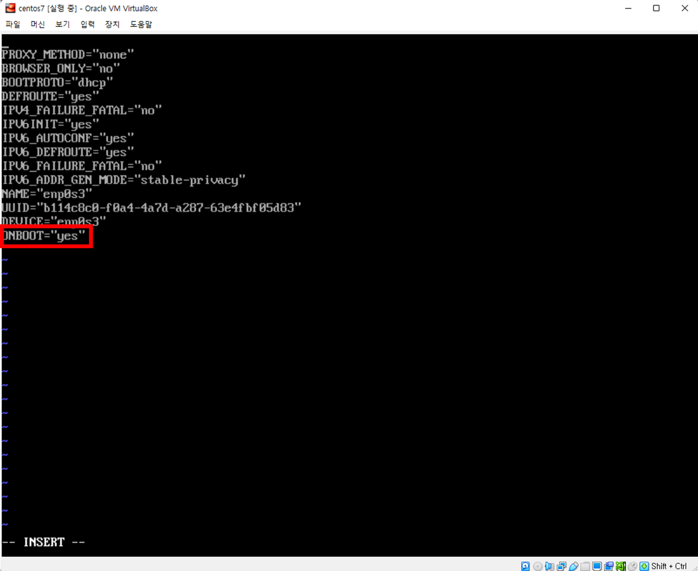 2. vi /etc/sysconfig/network-scripts/ifcfg-enp0s3 입력