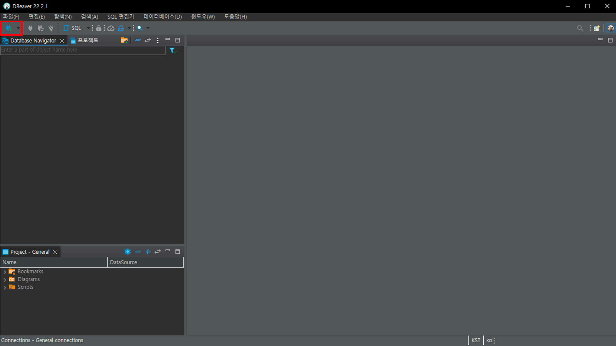1. DBeaver 실행 후 '새 데이터베이스 연결' 버튼 클릭