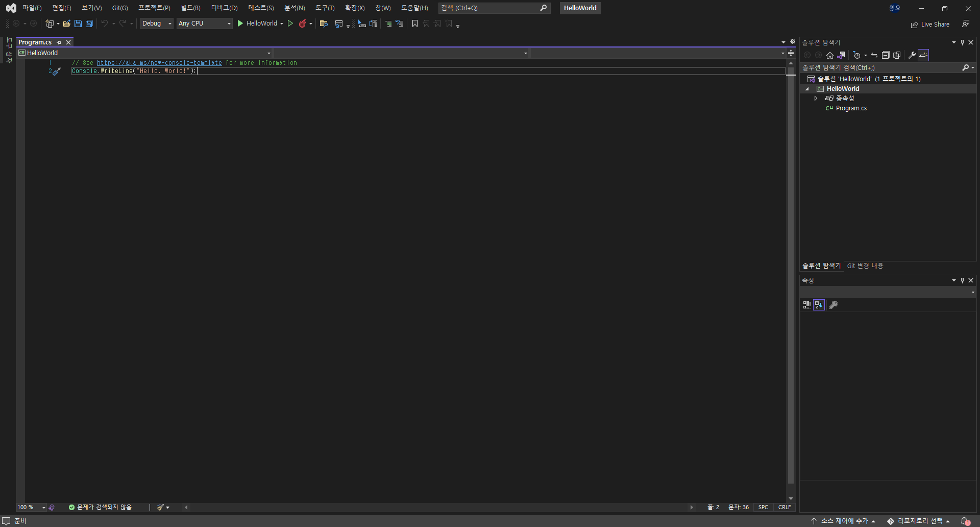 C#_Hello World 출력하기