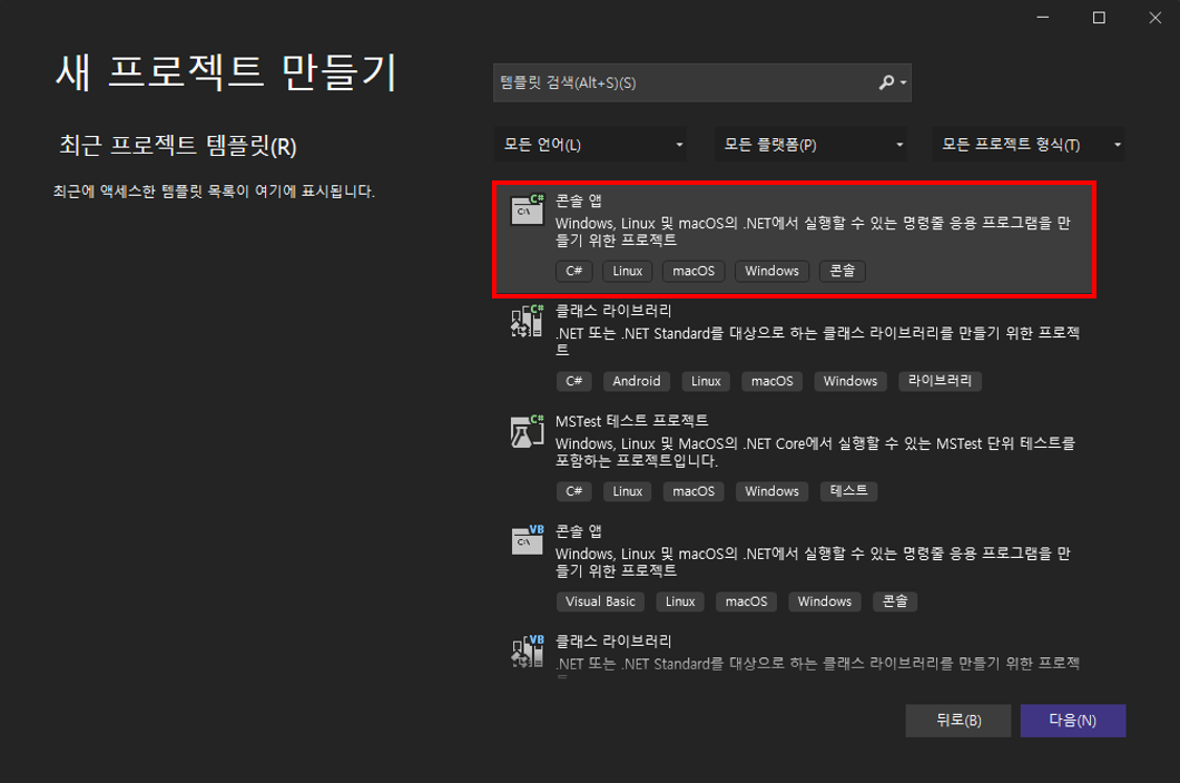 비주얼 스튜디오를 설치했으면 프로그램을 만들기 전 새 프로젝트를 먼저 만들어야 한다.