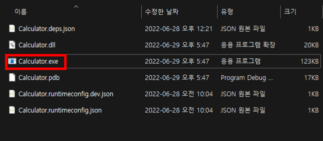 4. 프로젝트 실행 파일을 보기 위해선 'bin' 디렉토리에 접속 후 몇 번의 경로를 거치면 .exe 파일이 보인다.