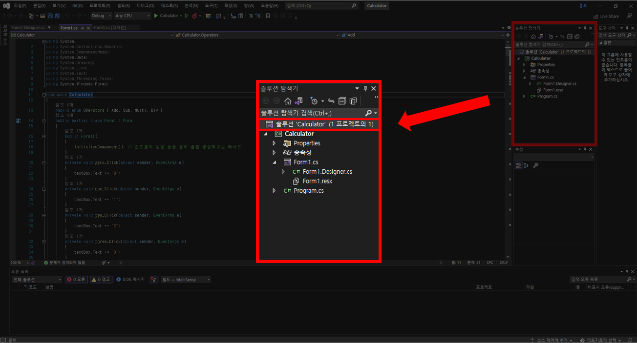 1. 프로젝트 화면에서 우측 솔루션 탐색기에서 최상단 솔루션을 우클릭한다.