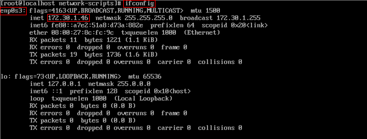 1-2. Guest IP 확인 : VirtualBox에서 ifconfig 명령어 입력 후 'enp0s3:'에 나오는 inet의 IP 주소 확인