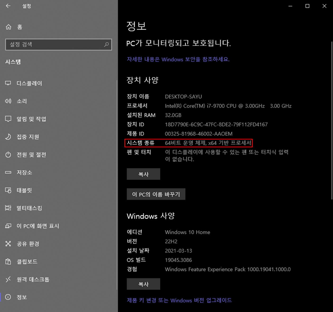 윈도우 10 32 비트 64 비트 확인방법 3가지 - 윈도우 운영체제 비트 확인하기 cmd 명령어