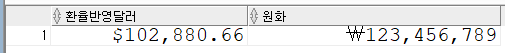 TO_CHAR(123456789/1200,'$999,999,999.99') AS 환율반영달러,