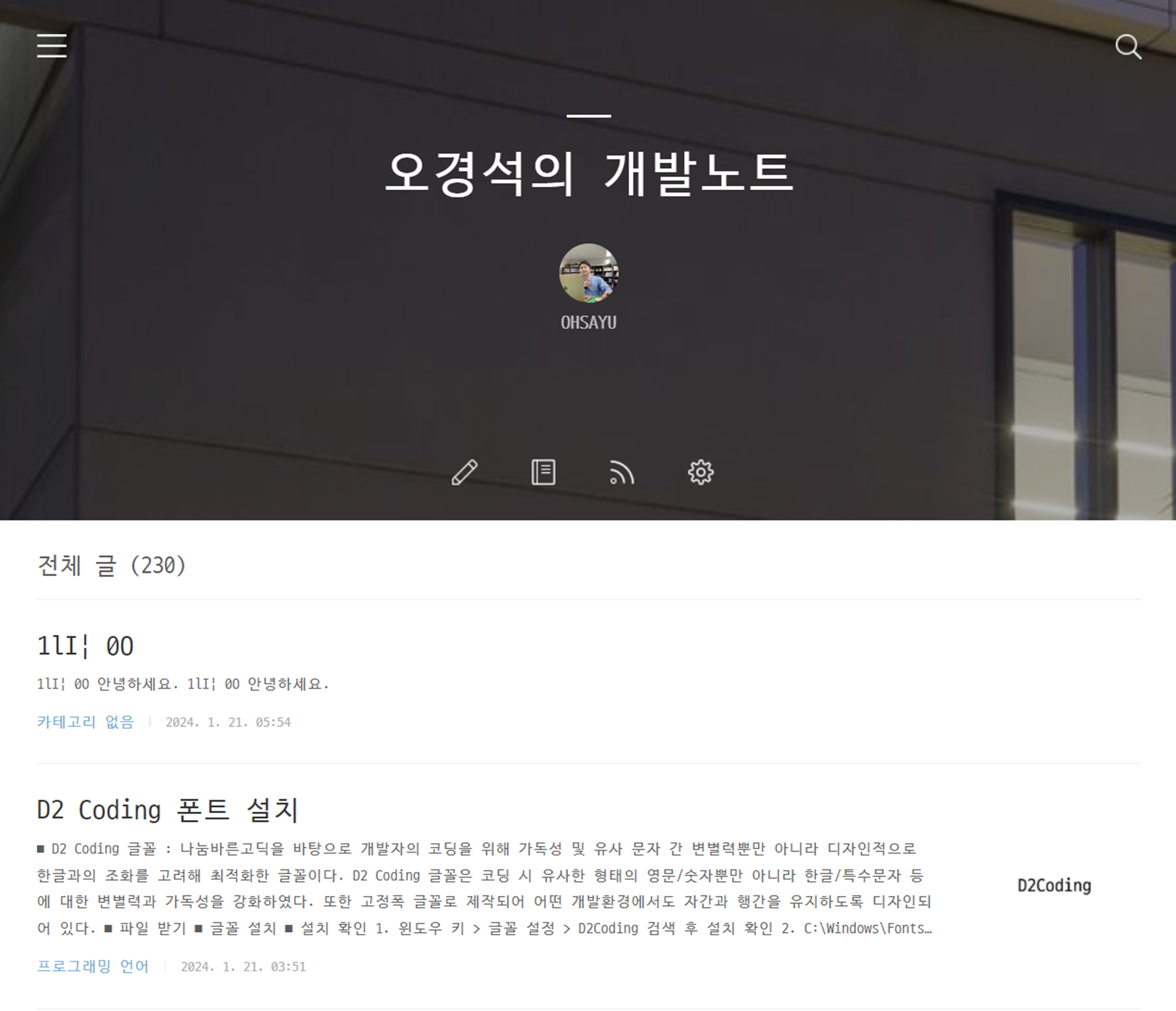 티스토리는 기본 글꼴에서 추가할 수 있는 기능이 없어 직접 css 수정을 해야한다. D2Coding 폰트로 변경을 해보자.