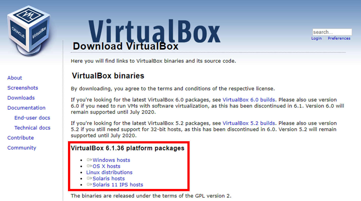 1. Oracle VM VirtualBox 설치 페이지 접속