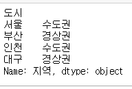 >>> Index(['서울', '부산', '인천', '대구'], dtype='object')